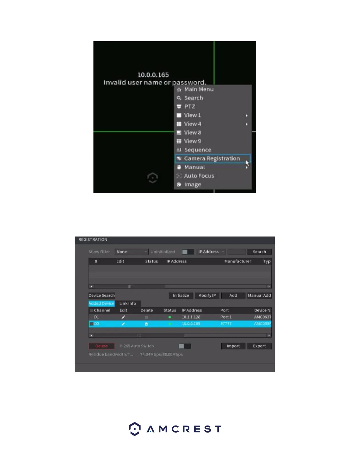 In the registration screen, click on the Edit icon (pencil) and ensure the username and password are