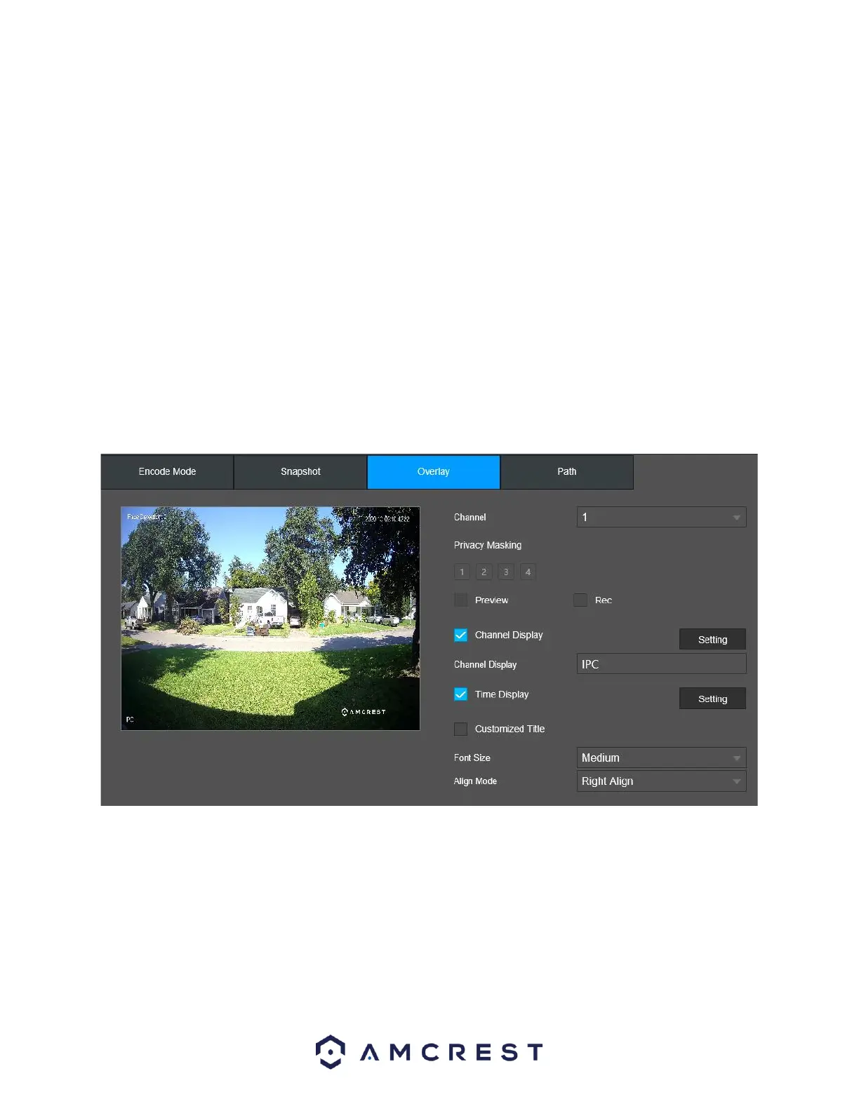 Below is an explanation of fields that can be modified on the overlay settings screen: