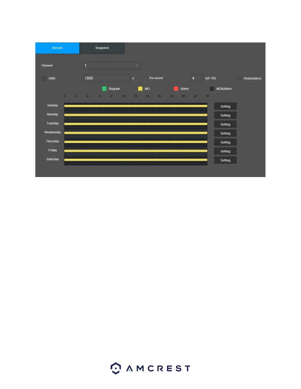 Regular: Regular recording means that the NVR captures all footage for the specified time period.