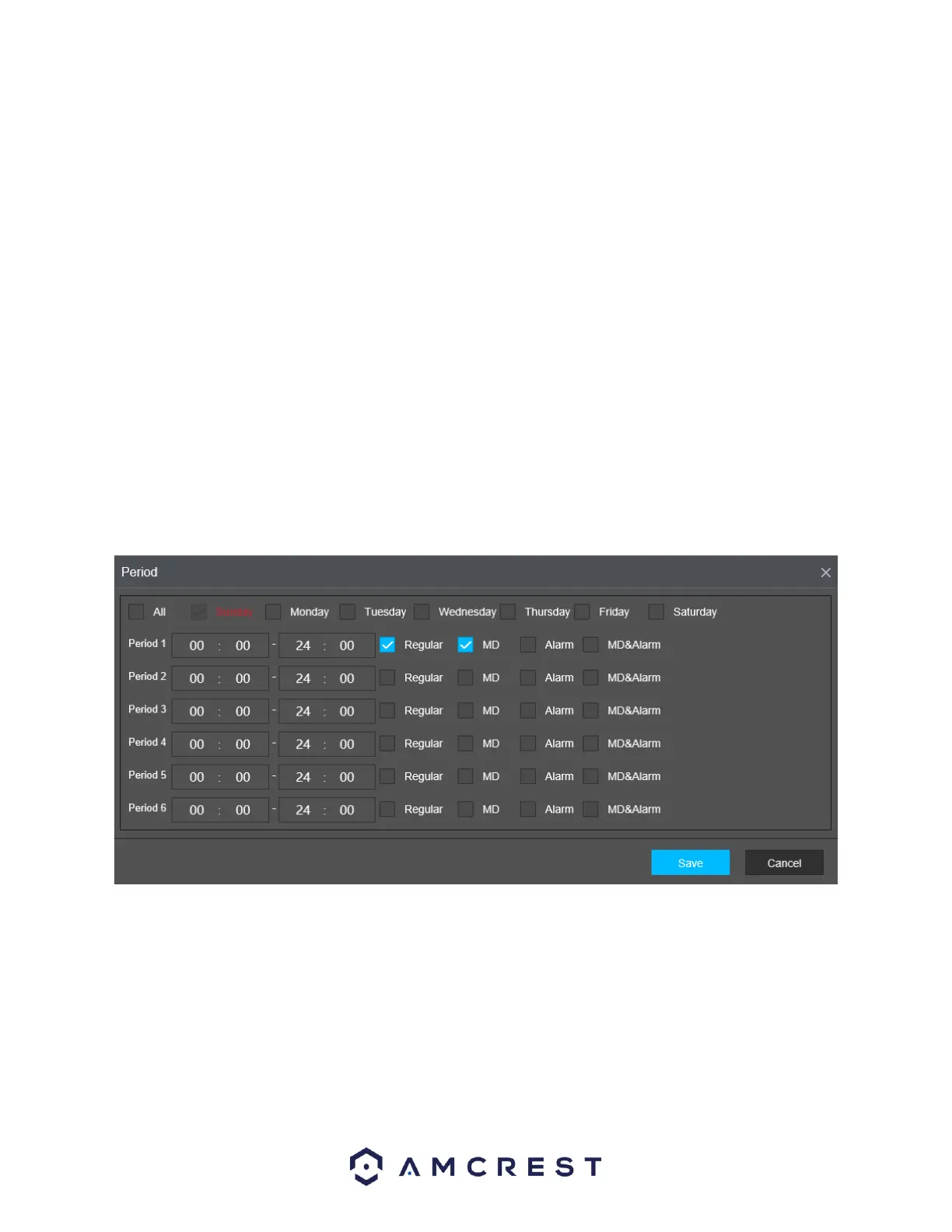 Regular: Regular recording means that the NVR captures all snapshots for the specified time period.