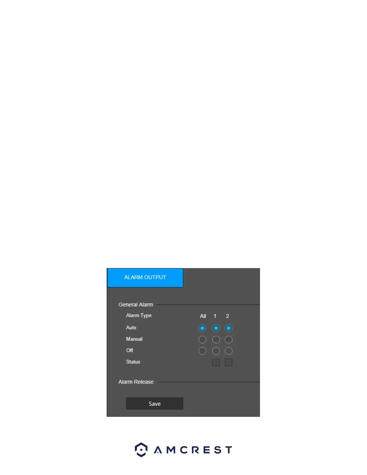 Auto: When an alarm event is triggered on the NVR, the connected alarm NVR generates alarms.