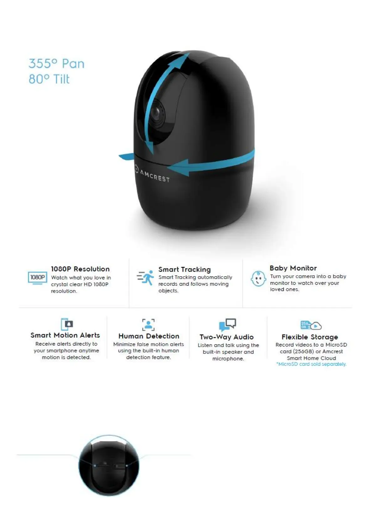 A microSD card is required to store events outside of the Amcrest Smart Home Cloud. The camera is