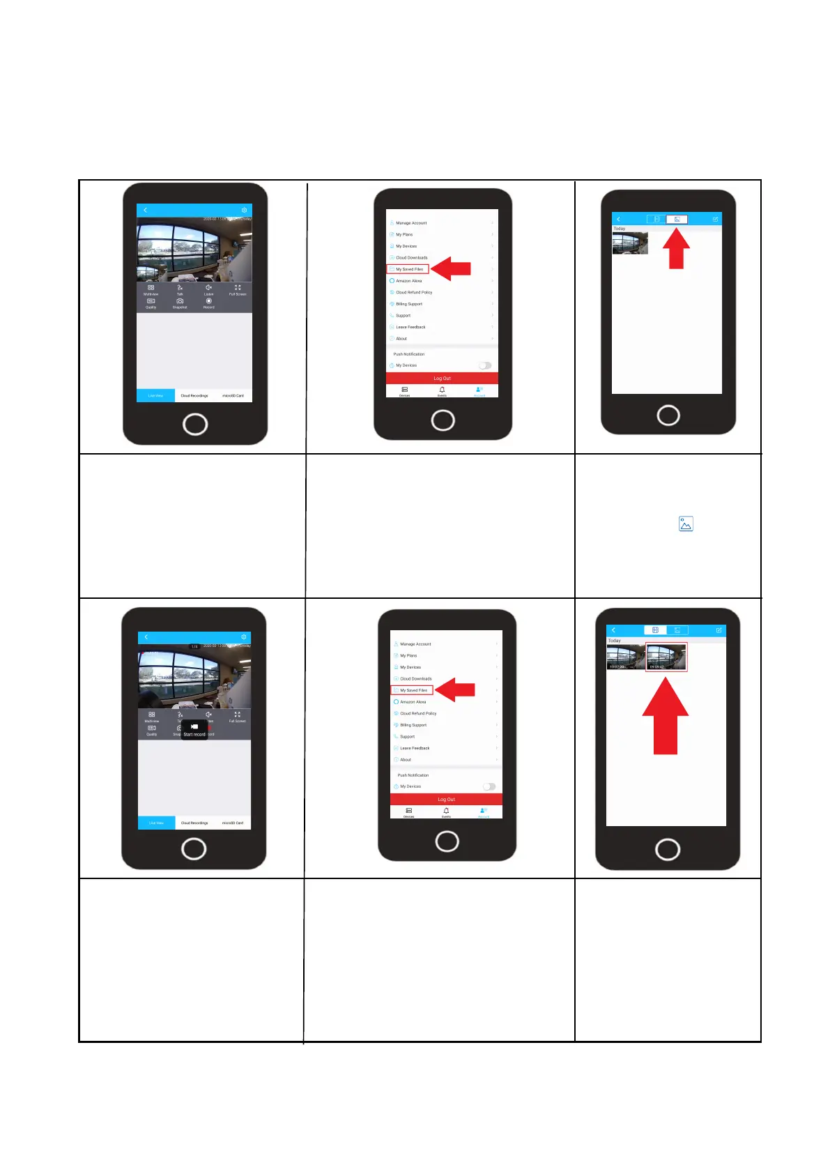 manual snapshots and videos will be stored in the My Saved Files folder located in the Account