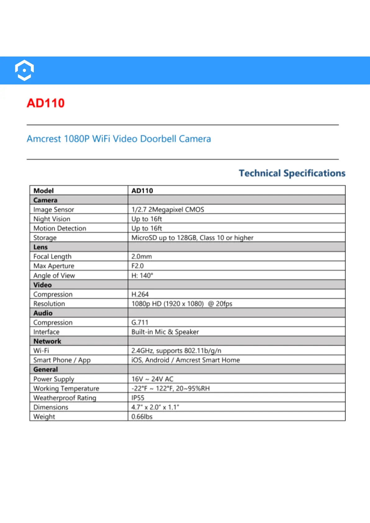 Amcrest SmartHome - Technical Specifications