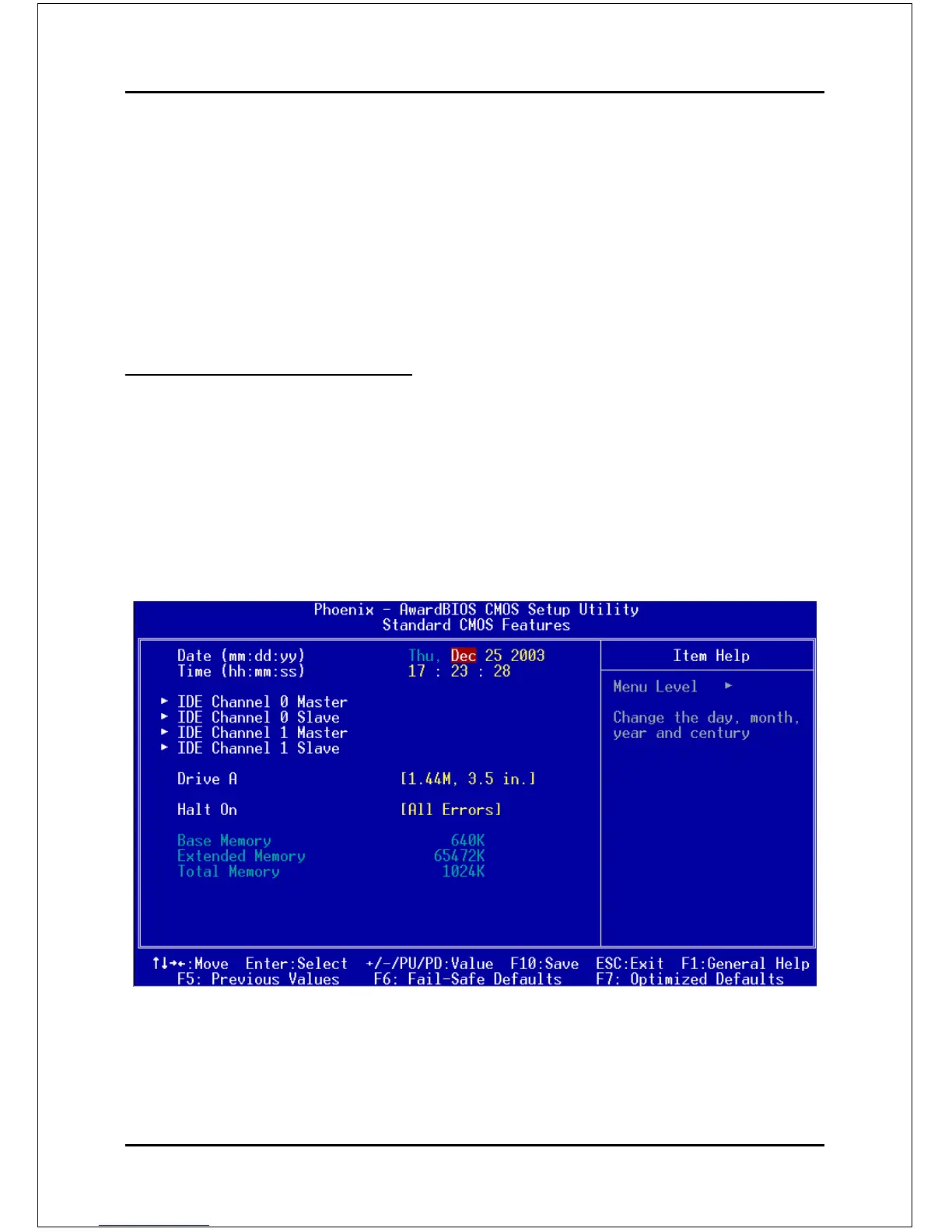 Choose “STANDARD CMOS FEATURES” in the CMOS SETUP UTILITY Menu