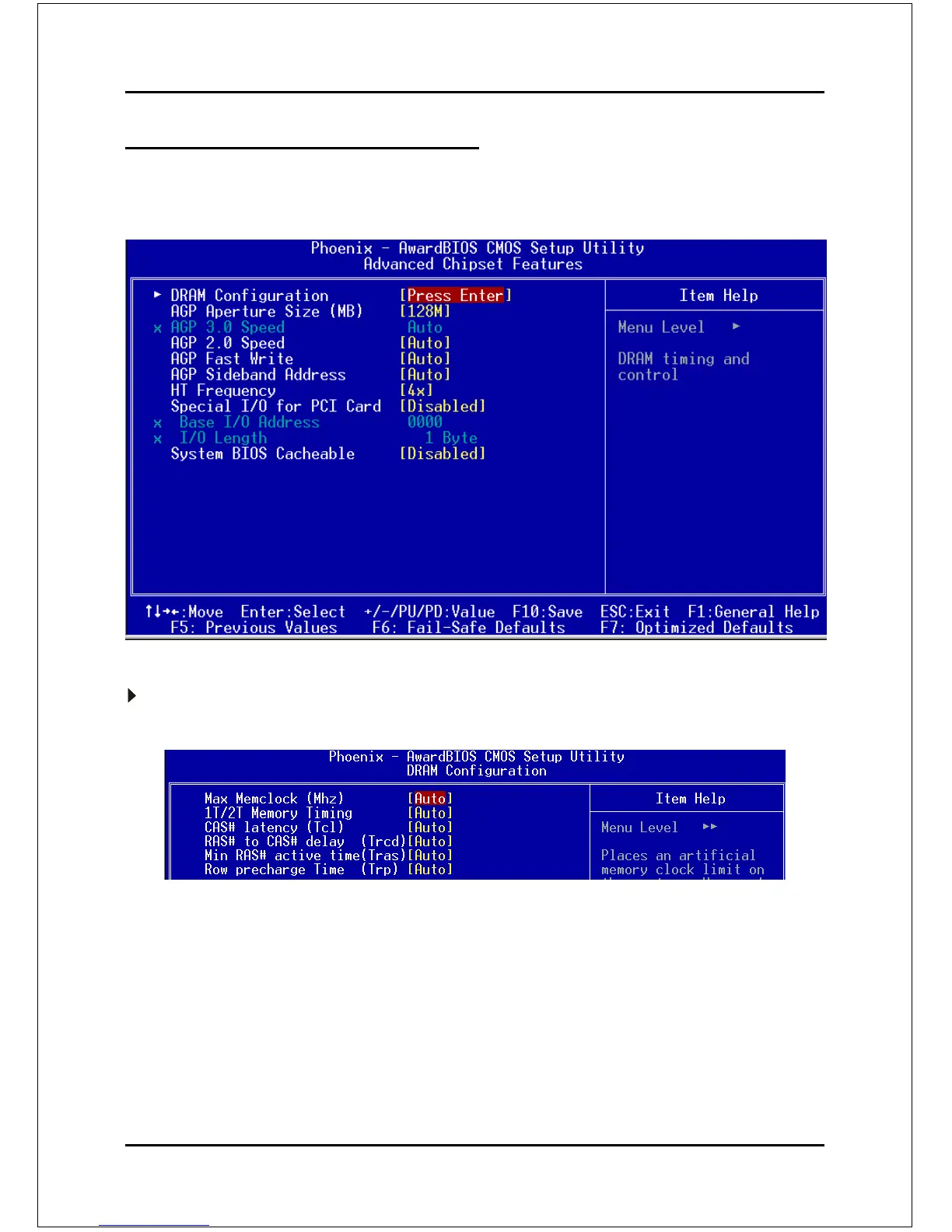 Scroll to DRAM Configuration and press <Enter>. The following screen appears:
