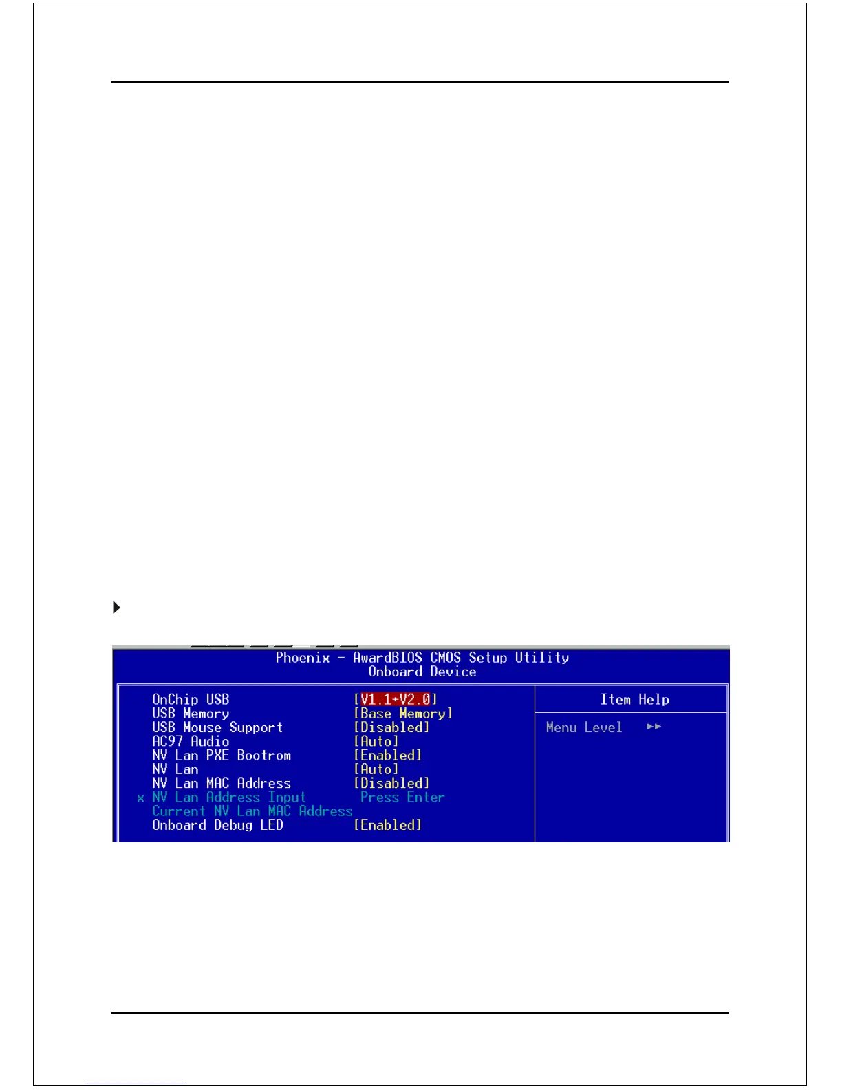 Scroll to Onboard Device and press <Enter>. The following screen appears: