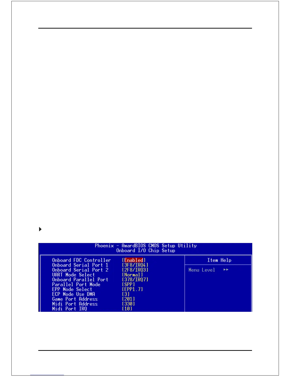 Select “Enabled” if you wish to use onboard floppy disk controller (FDC). If you