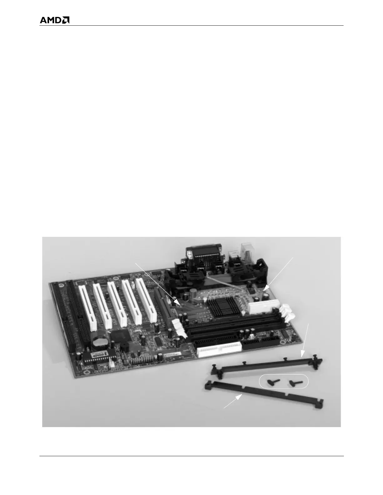 arrows in Photo 16. Position the heatsink support base in the mounting holes with the