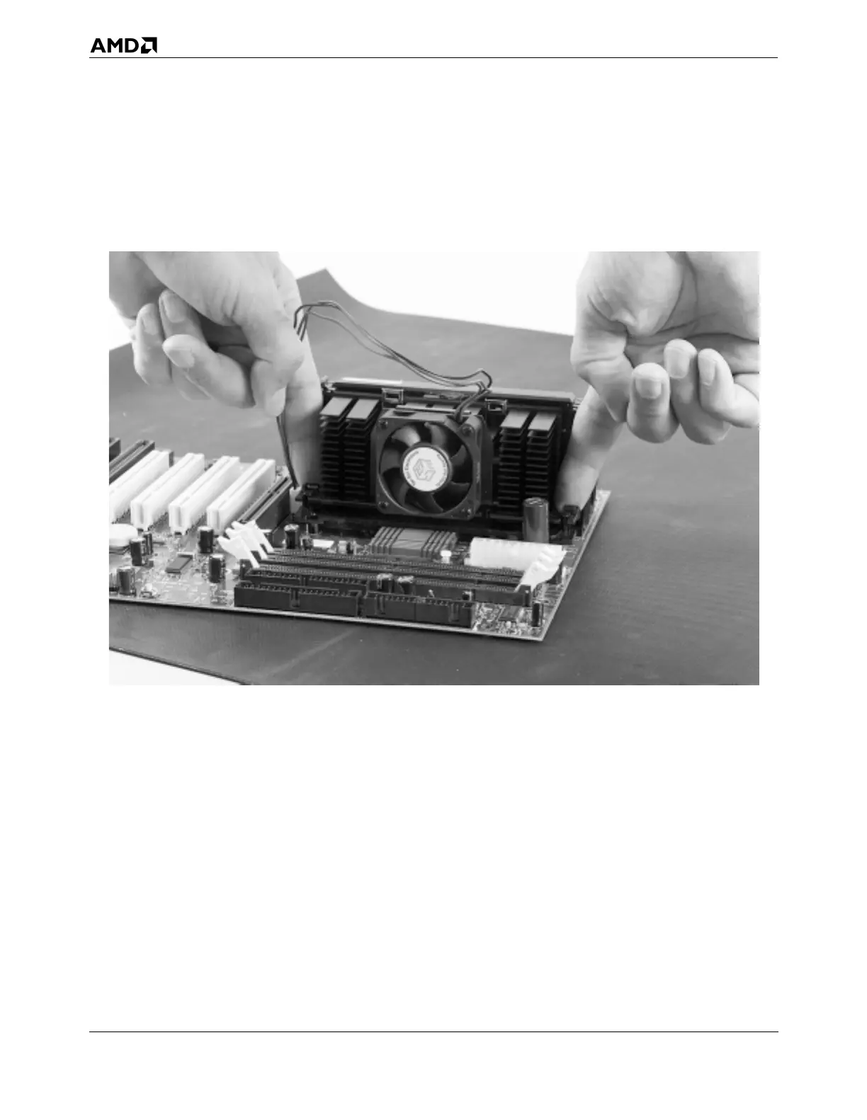 Slide the heatsink support clip onto the grooves on the heatsink support as shown in