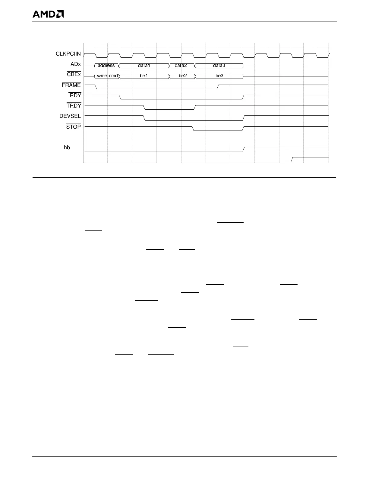 ■ Clock #4: The PCI host bridge write FIFO is full (or the target read FIFO is empty for