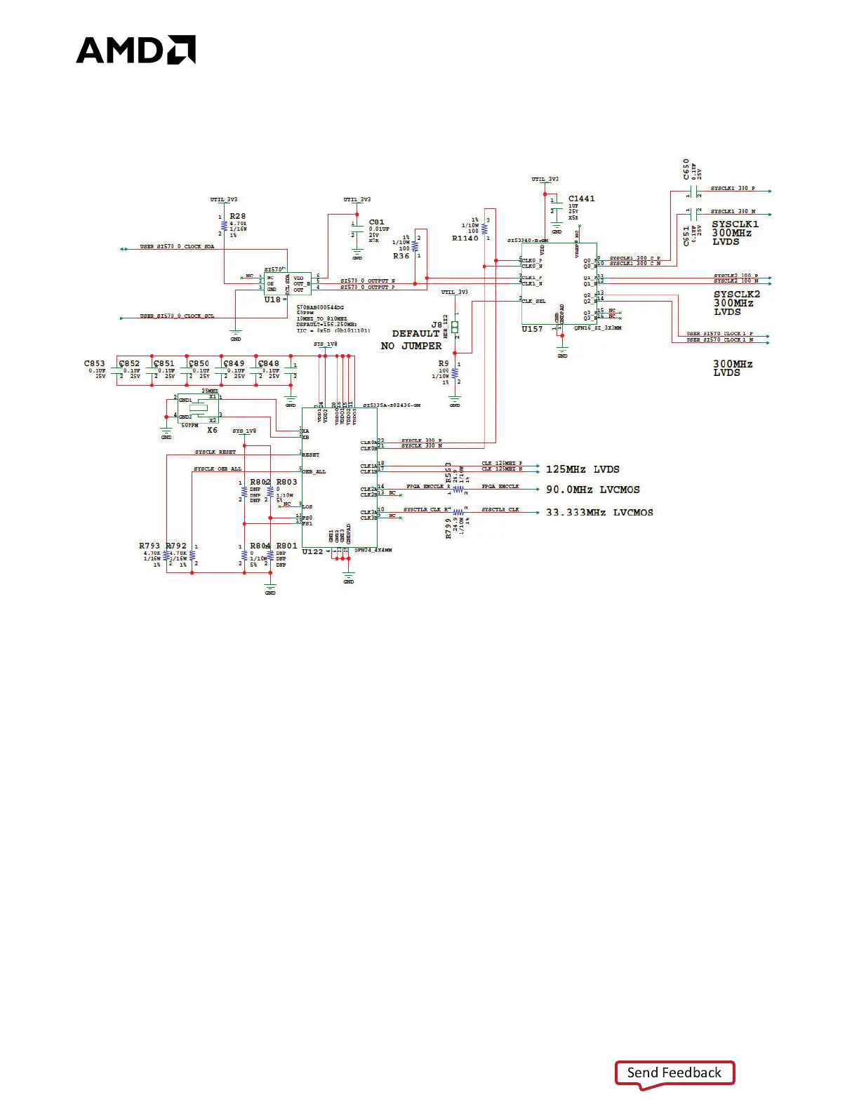 CLK0, the SI5335A quad clock generator U122 CLK0 300 MHz fixed frequency output. SI570