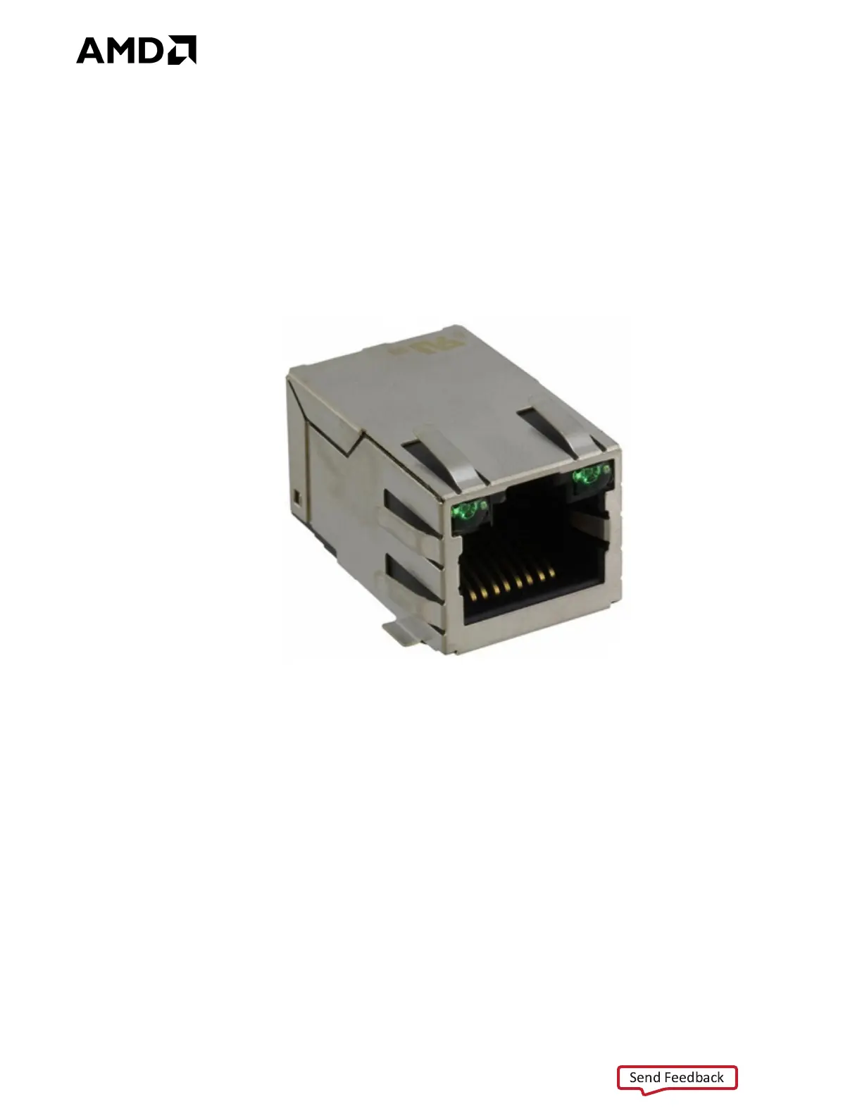 Two Ethernet PHY status LEDs are integrated into the metal frame of the J10 RJ-45