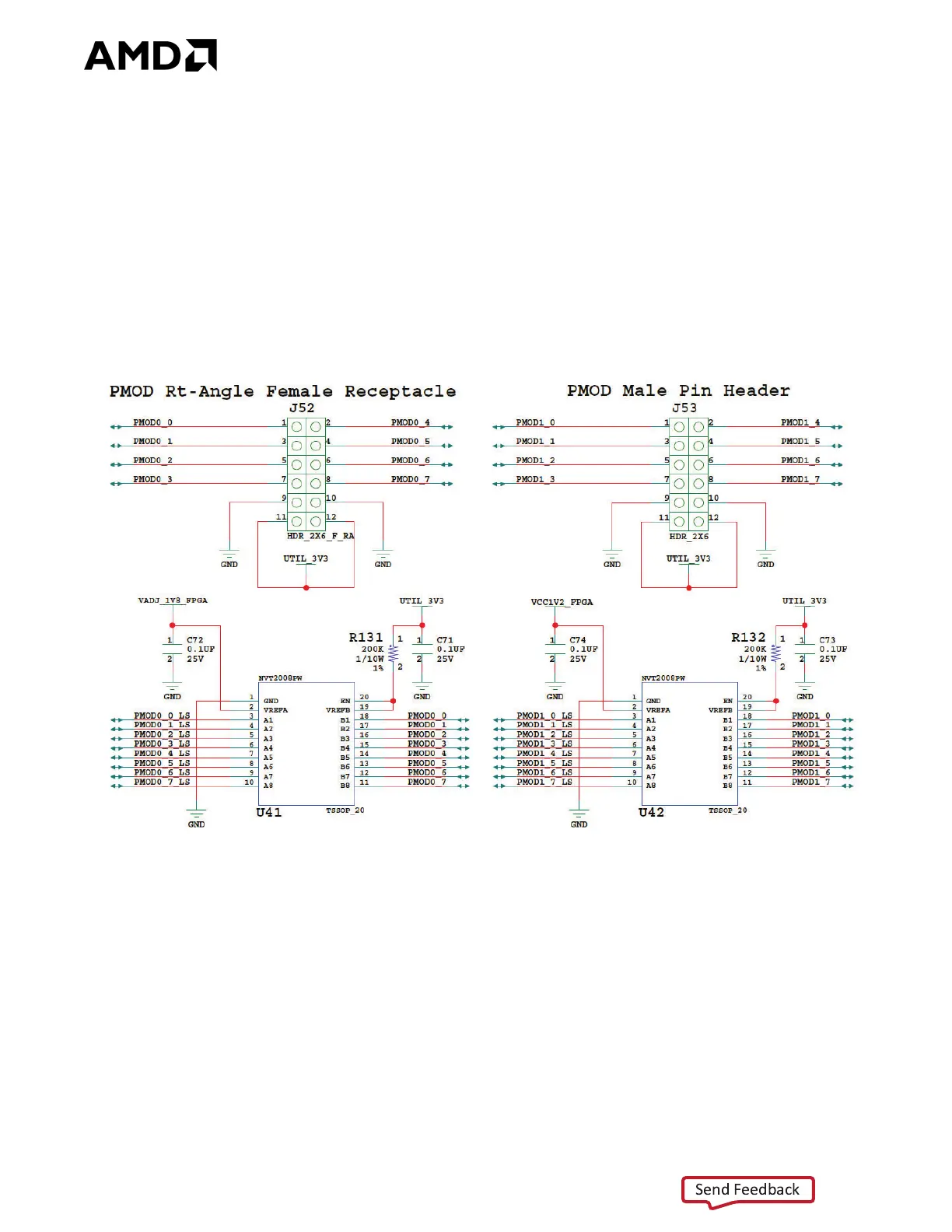 nets connected to these headers are accessed using level shifters U41 (PMOD0 J52) and U42