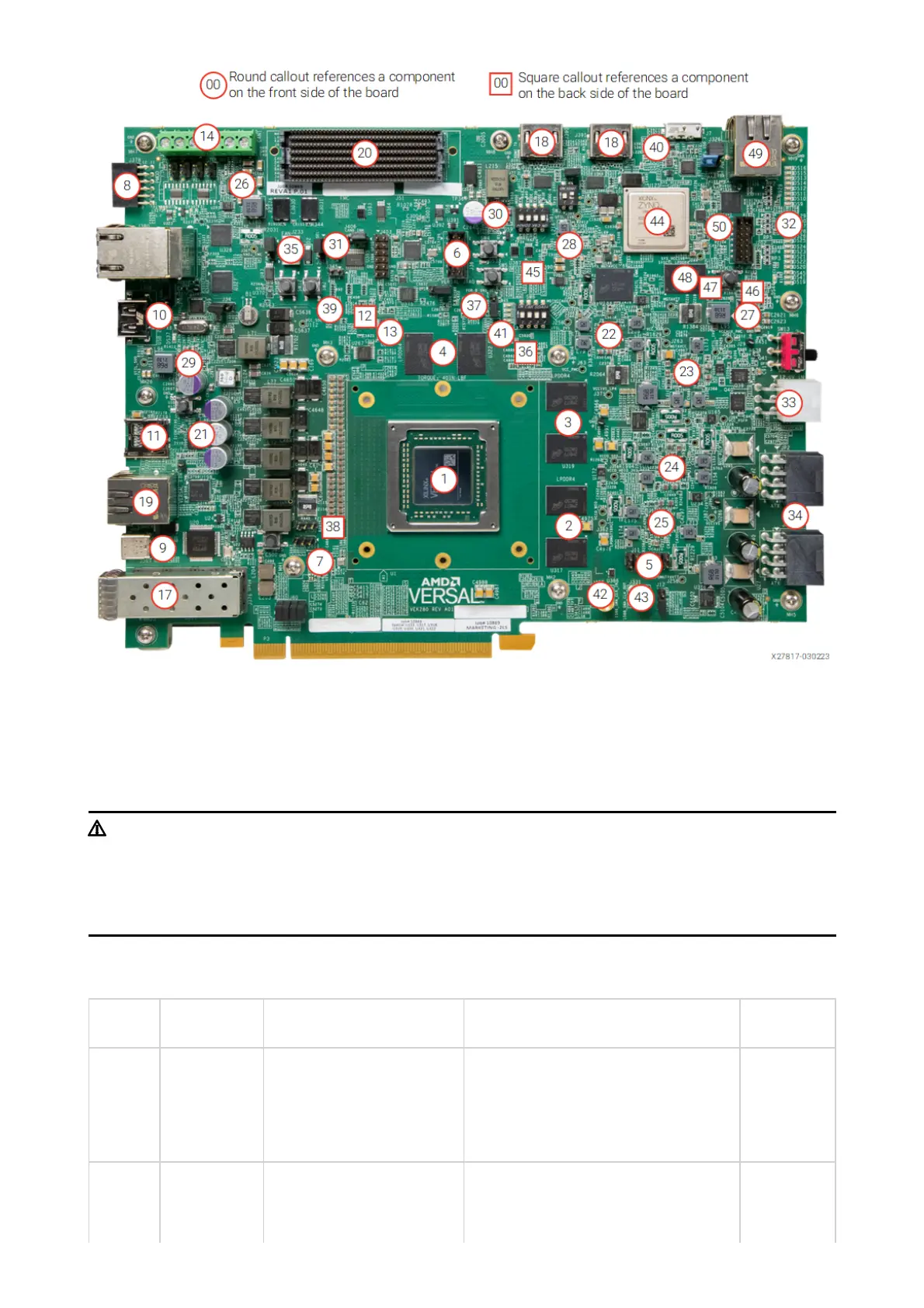 Table: Board Component Locations