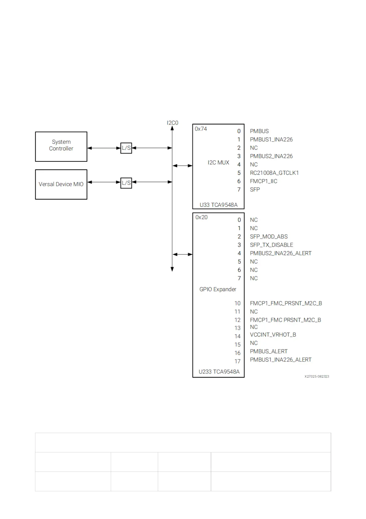 bus of the I2C0 U33 TCA9548A switch are listed in the following tables.