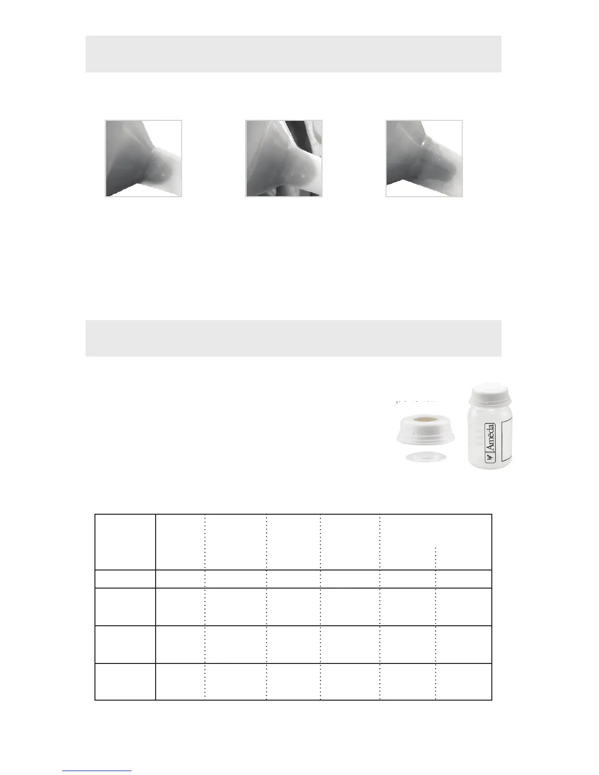 dans les bouteilles de conservation Ameda, veuillez refermer