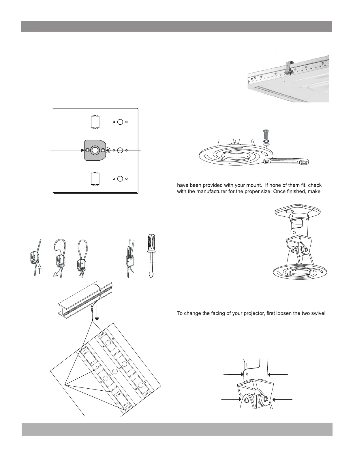 Use two 8mm hex bolts (H) to attach mount plate (P) to ceiling