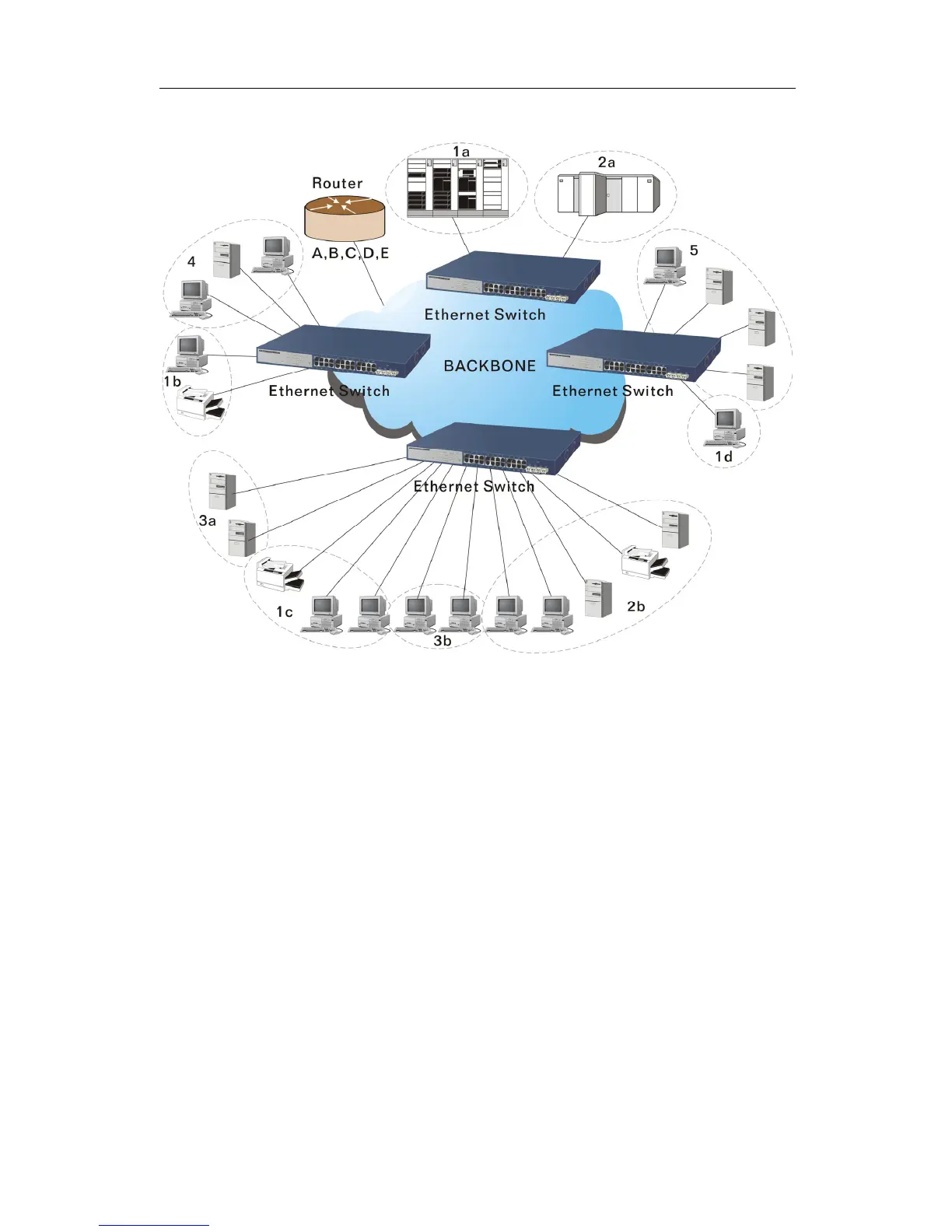 The users 1x (x denotes a ~ d) are members of VLAN 1. Any traffic within VLAN 1