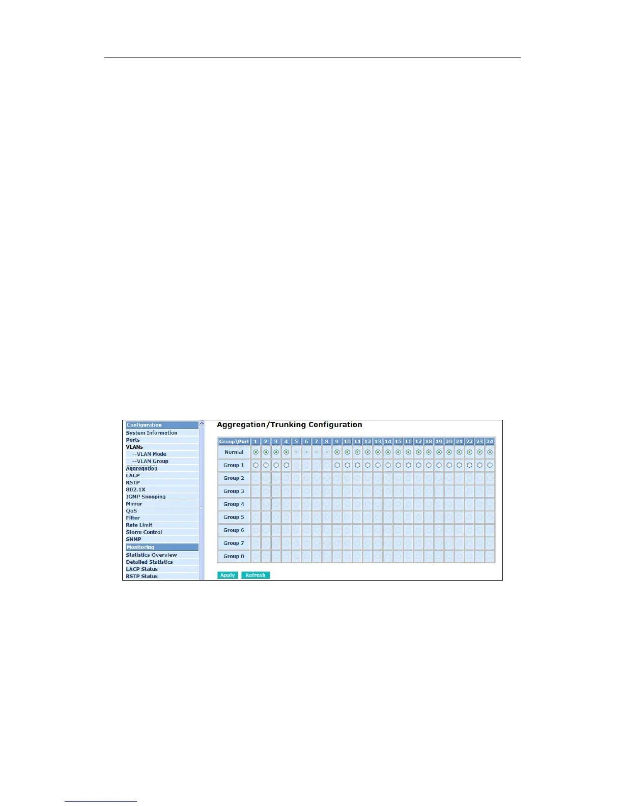 The Aggregation (Port Trunking) Configuration is used to configure the