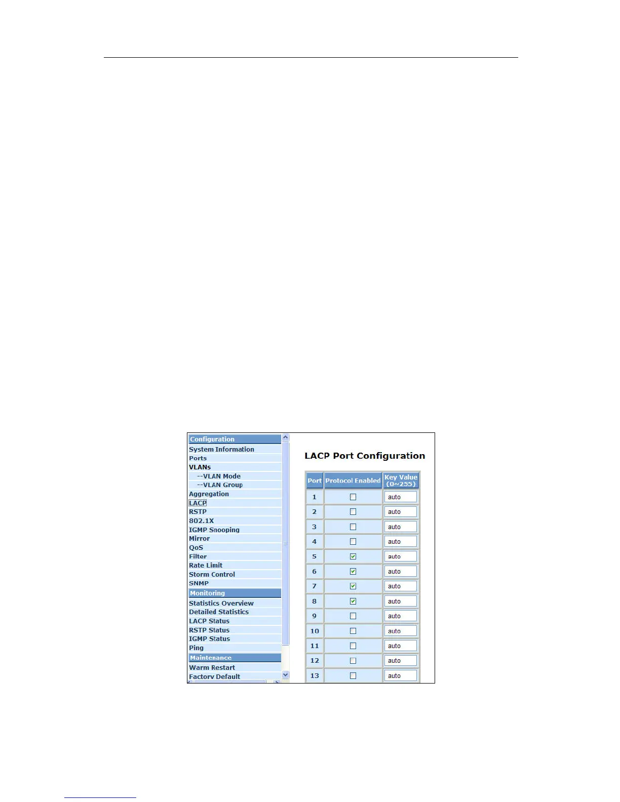 Fig. 4-11 LACP Port Configuration