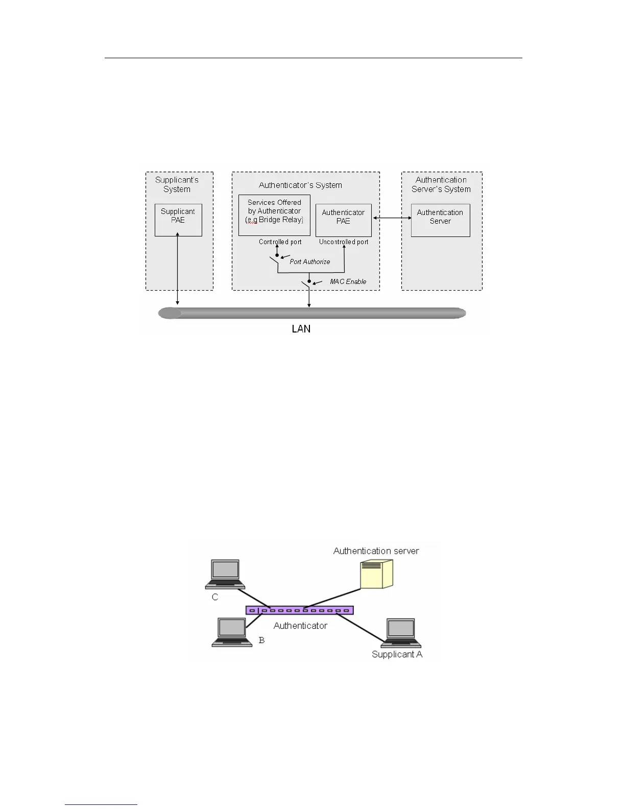 Supplicant PAE. In this case, PC A wants to access the services on device B and C,