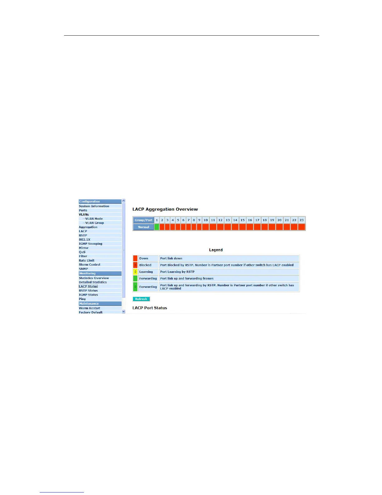Display LACP status. Fig. 4-30 illustrates that LACP Status window can show