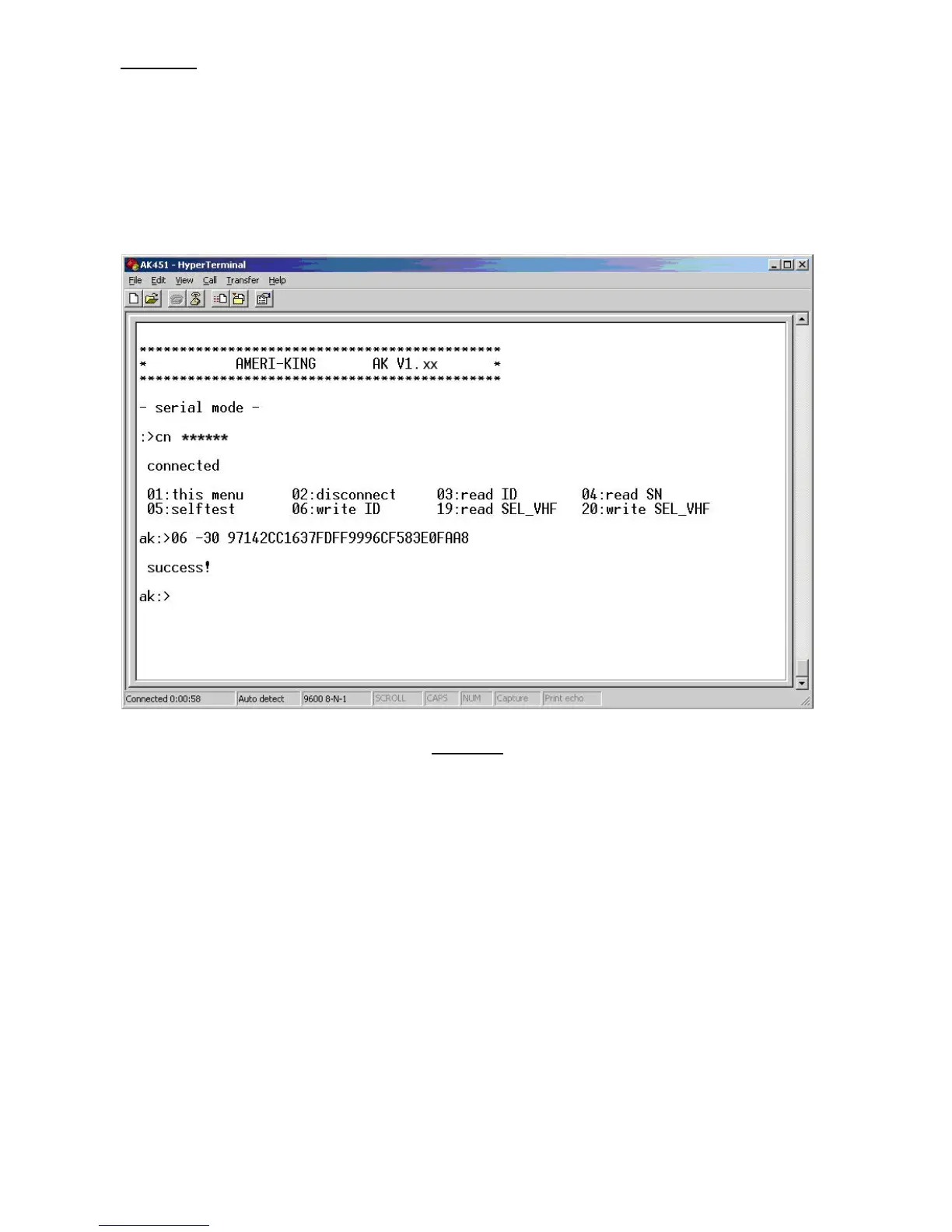 Example: To program 30 Hex ID to the ELT: (Long Messages), at the command