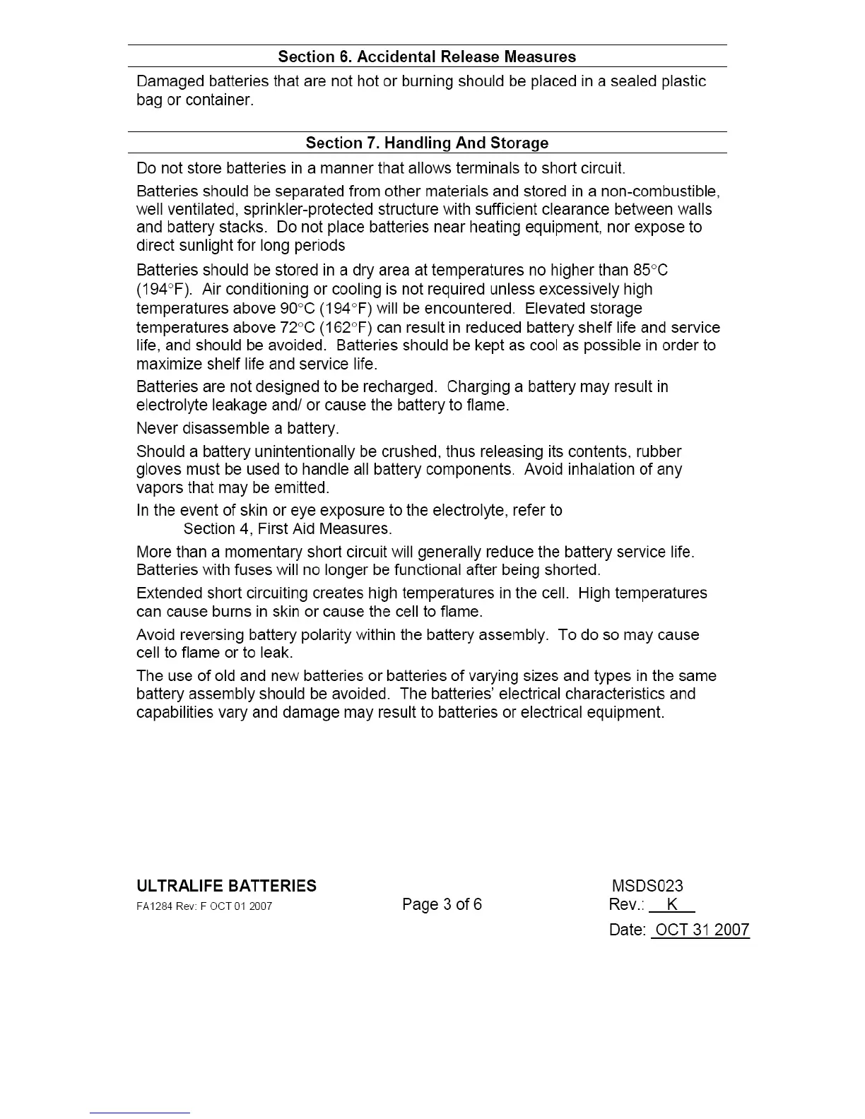 Ameri-King AK-451 Series - Section 6. Accidental Release Measures; Section 7. Handling and Storage