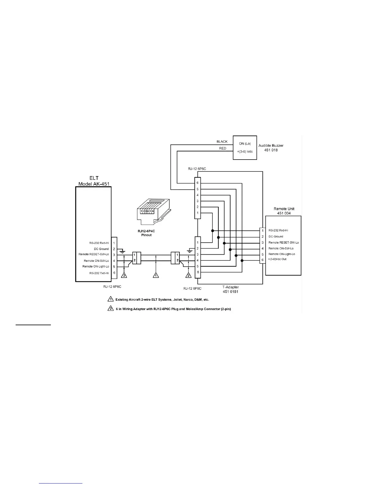 Figure 14.1d: Wiring Diagram for retrofitting AK-451 with 2-wire interconnecting ELT Main Unit and Remote Switch Unit, D&M, Narco,