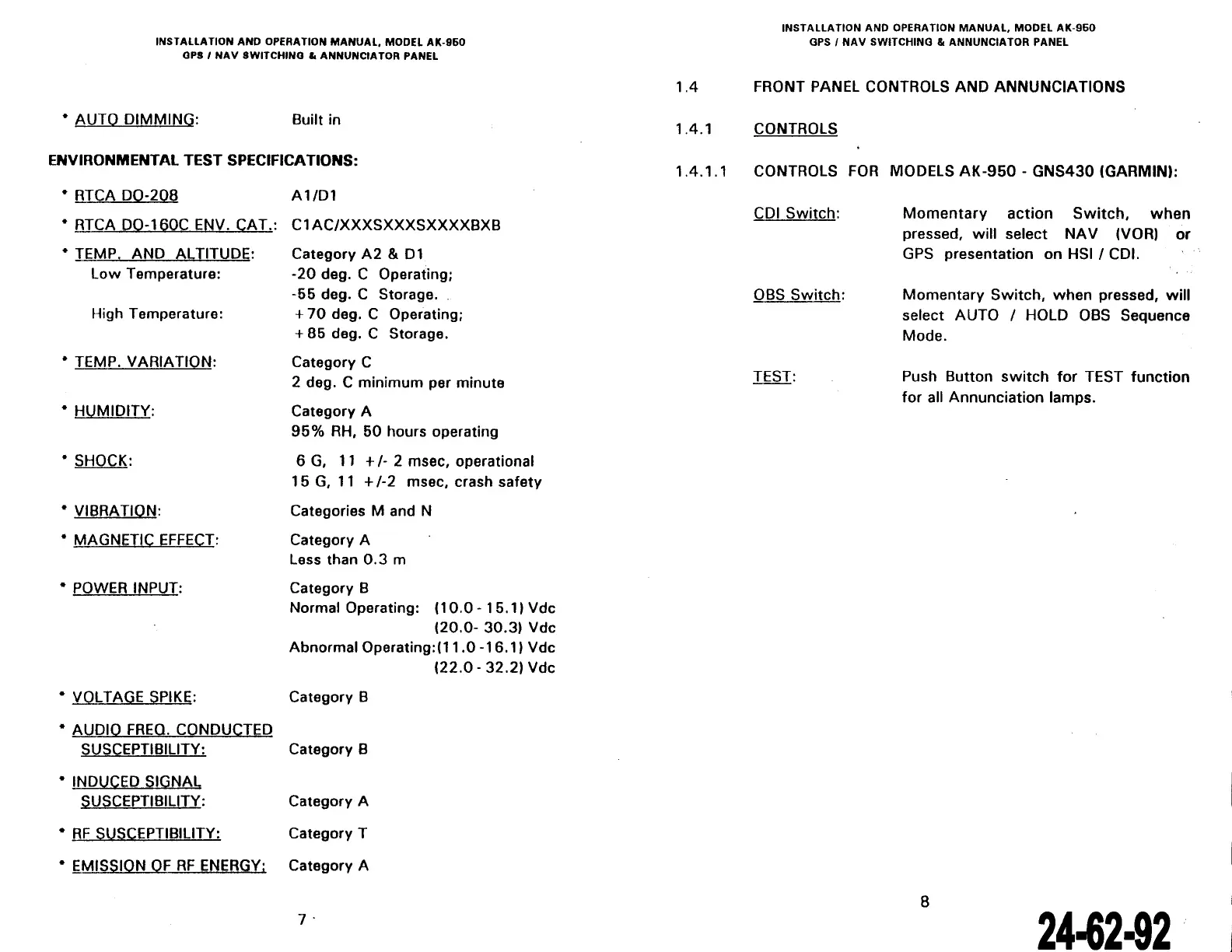 ENVIRONMENTAL TEST SPECIFICATIONS: