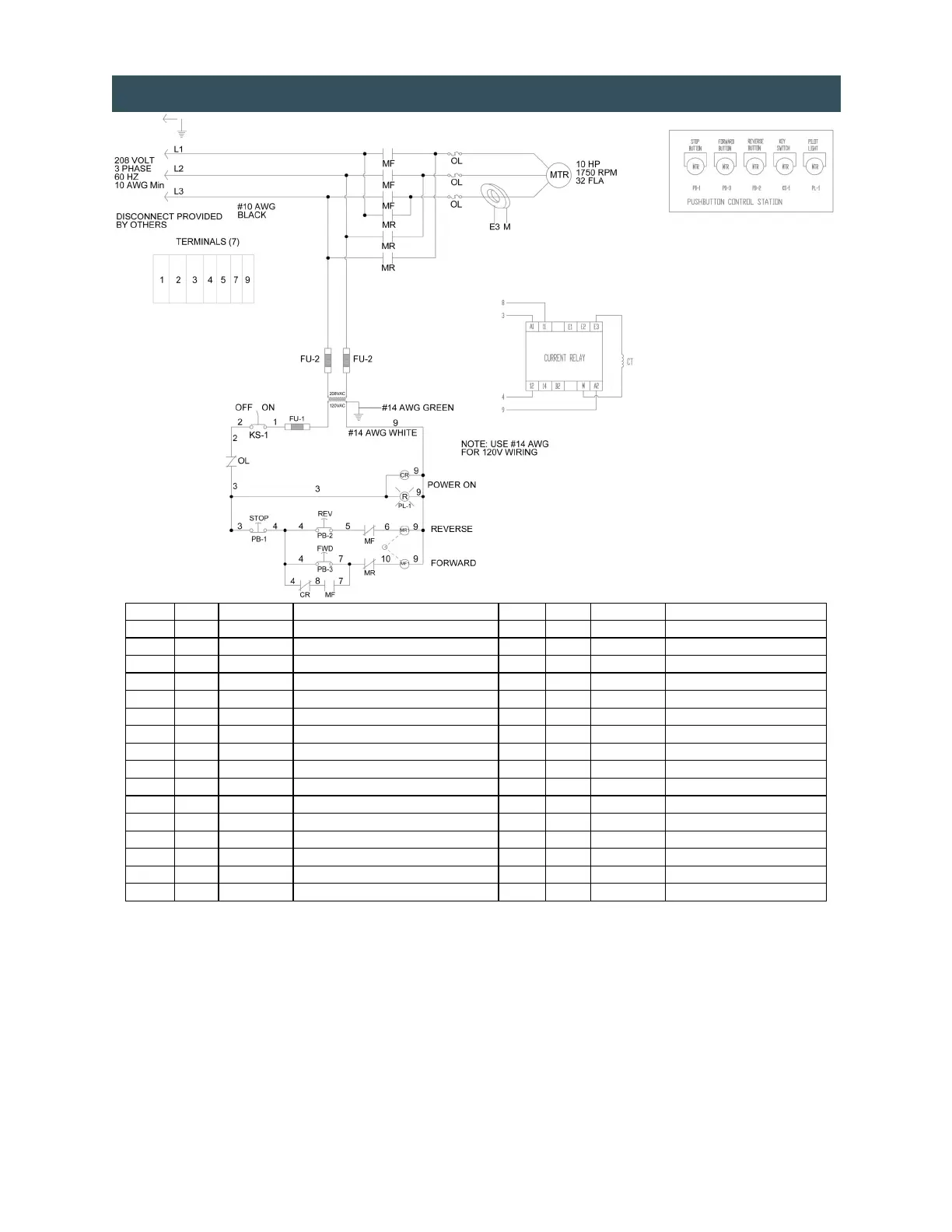 ELECTRICAL DIAGRAM - 10 HP, 208 V 3 PH-60 HZ