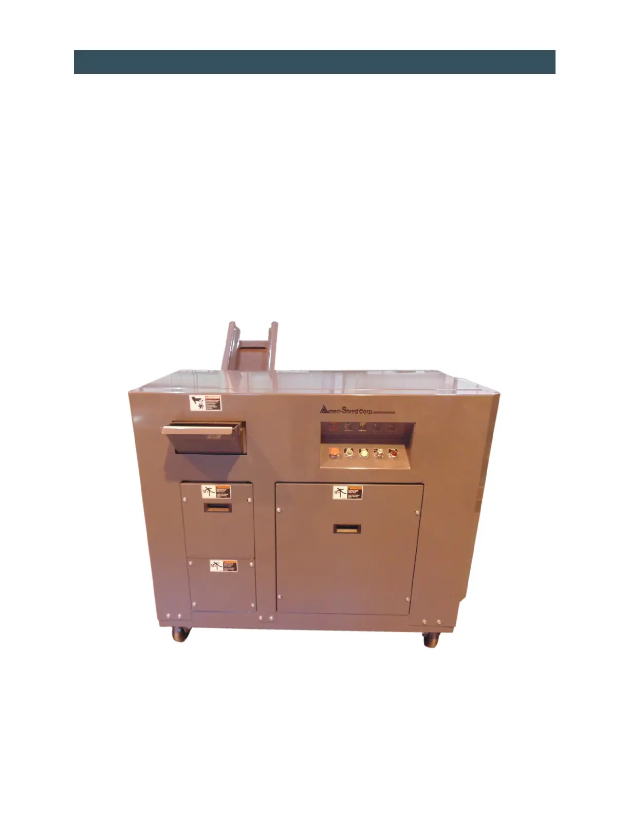 Your new Ameri-Shred shredder has been secured to a pallet for shipping. Please inspect equipment