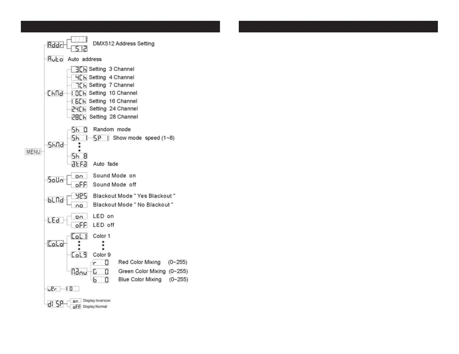 DMX channel mode. Press the UP or DOWN buttons to nd your