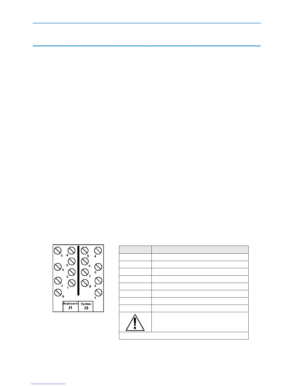 manual. Pin definitions for both the keyboard (J1) and system (J2) sides of the terminal block are