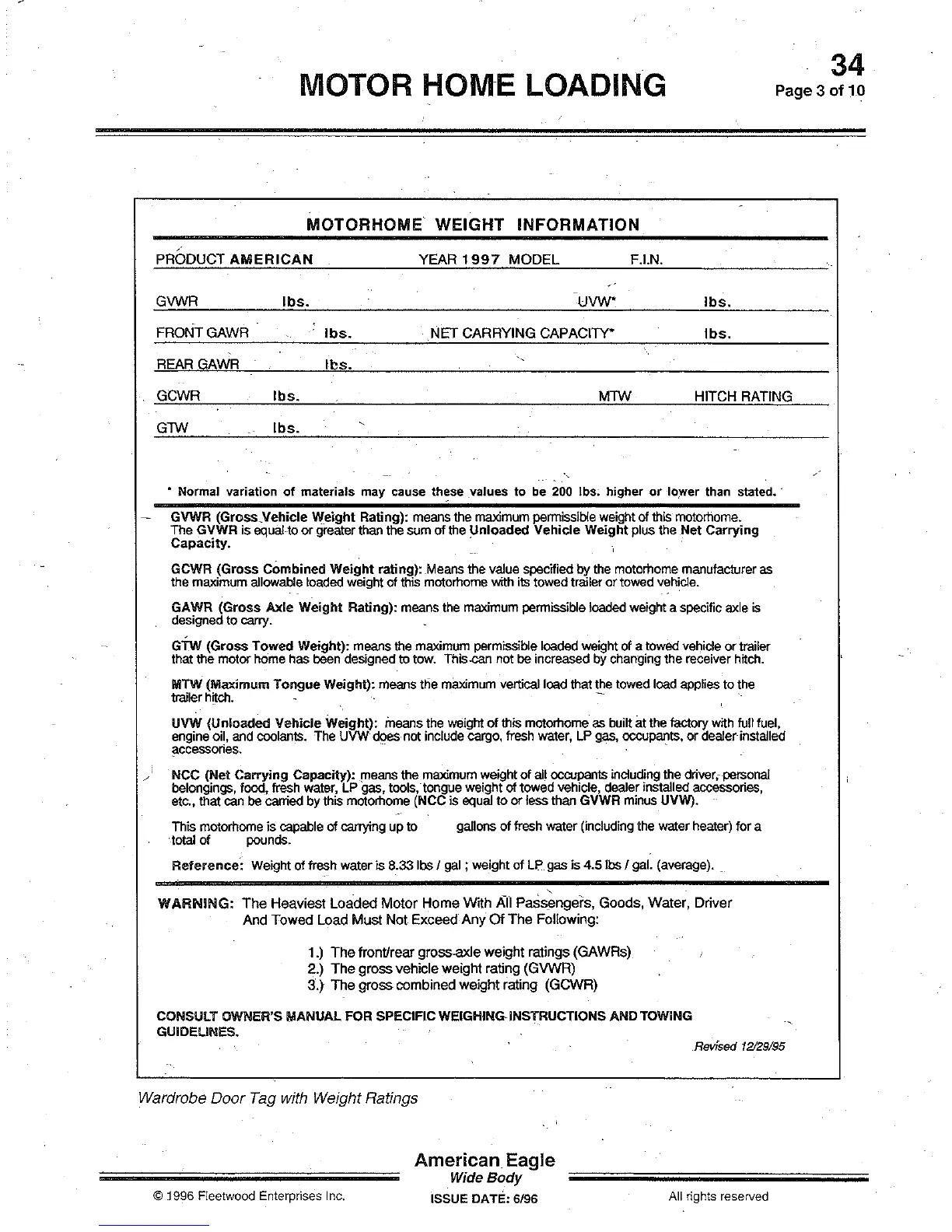 CONSULT OWNER'S Il/IANUAL FOR SPECIFIC WEIGHING-INSTRUCTIONS AND TOWING