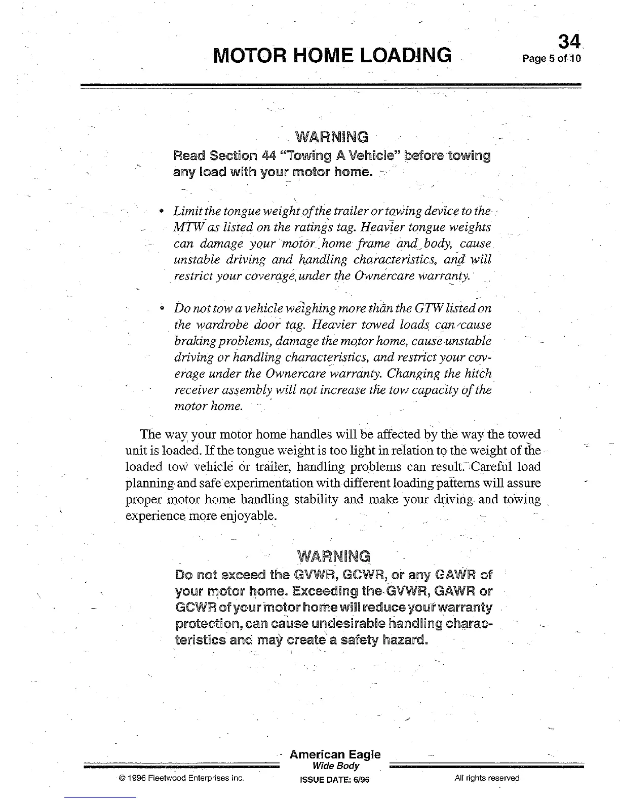 loaded tow vehicle or trailer, handling problems can resulCCareful load