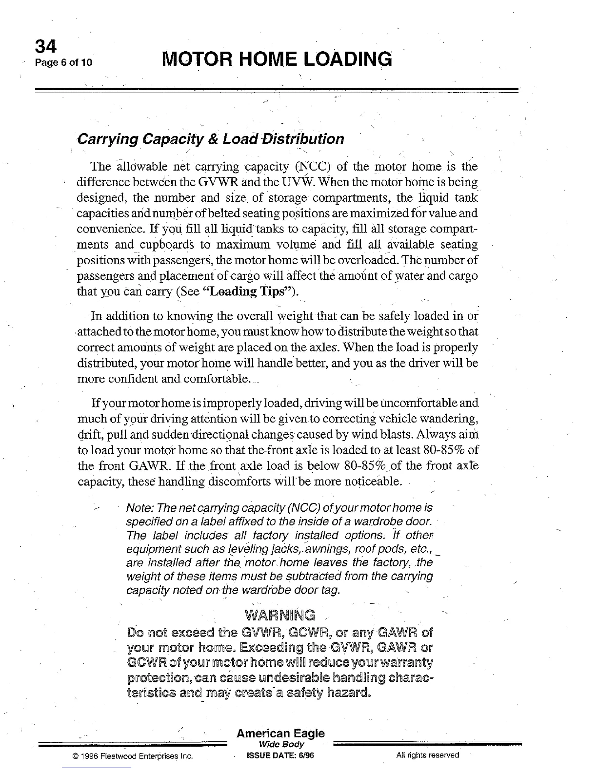 to load your motOr home so that the.front axle is loaded to at least 80-85%