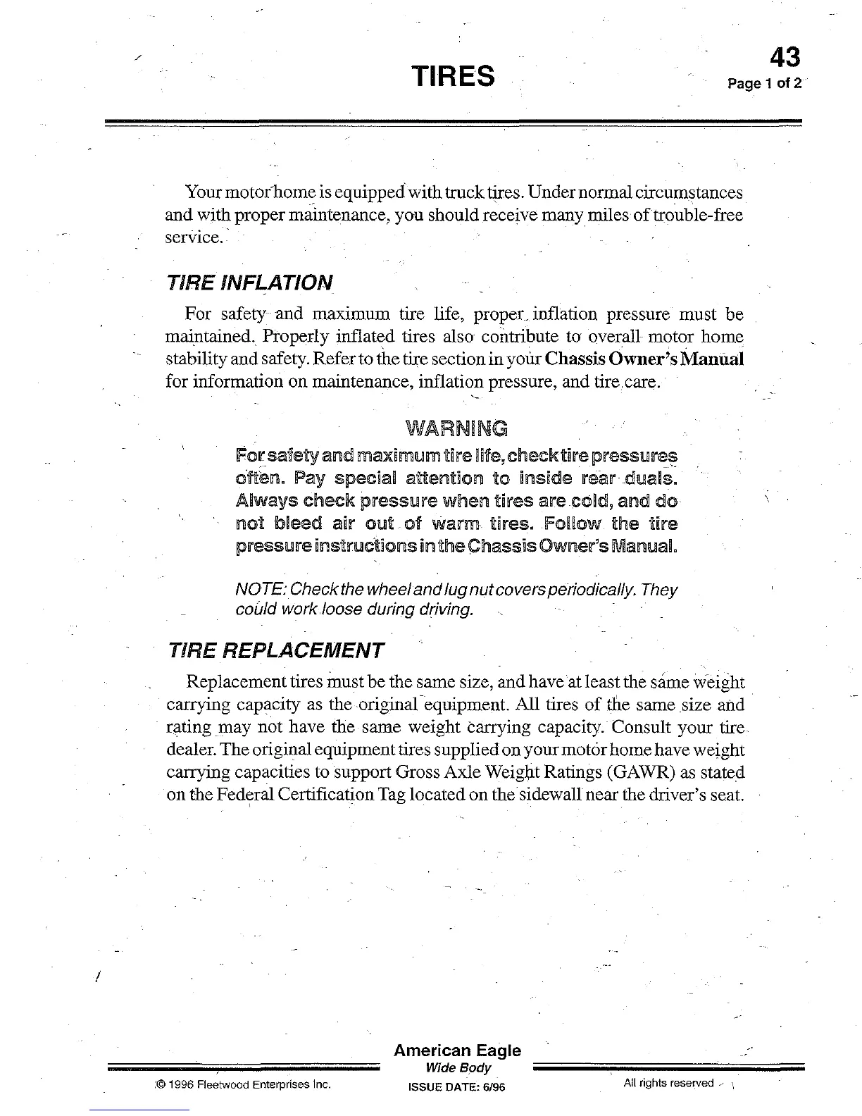 Your motorhome is equipped with truck tires. Undernormal circumstances