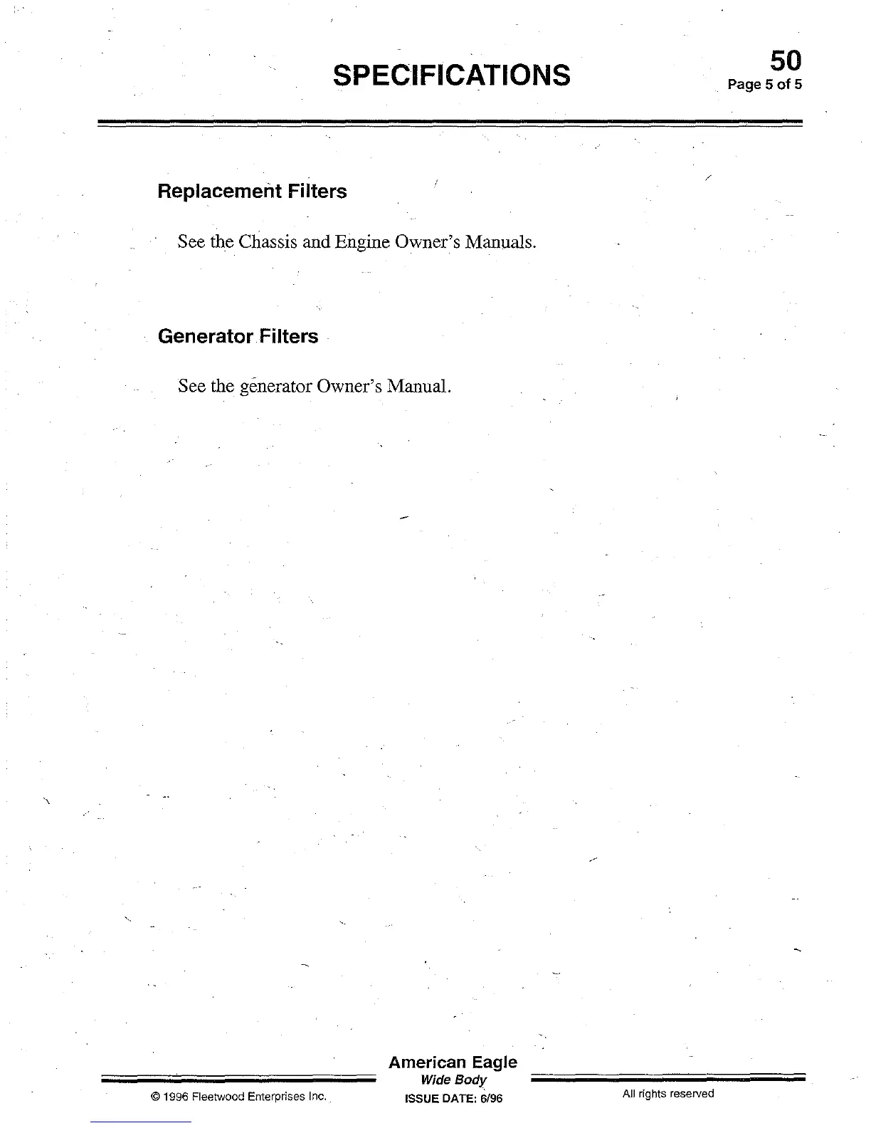 American Eagle 1997 - Replacement Filters; Generator Filters