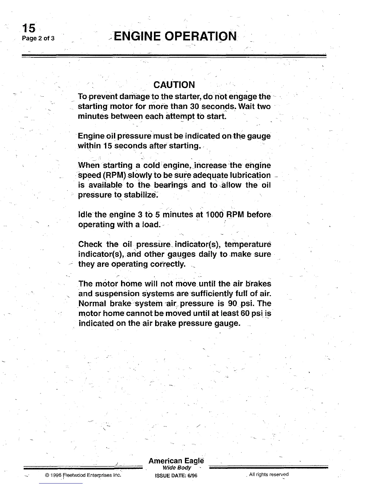 American Eagle 1997 - Engine Operation Cautions and Gauges