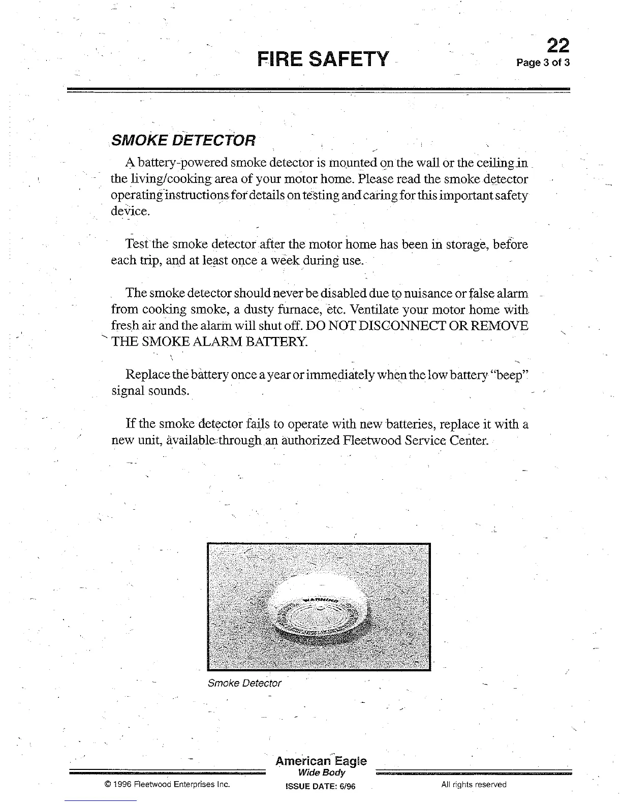 smoke detector after the motor home has been in storage, before