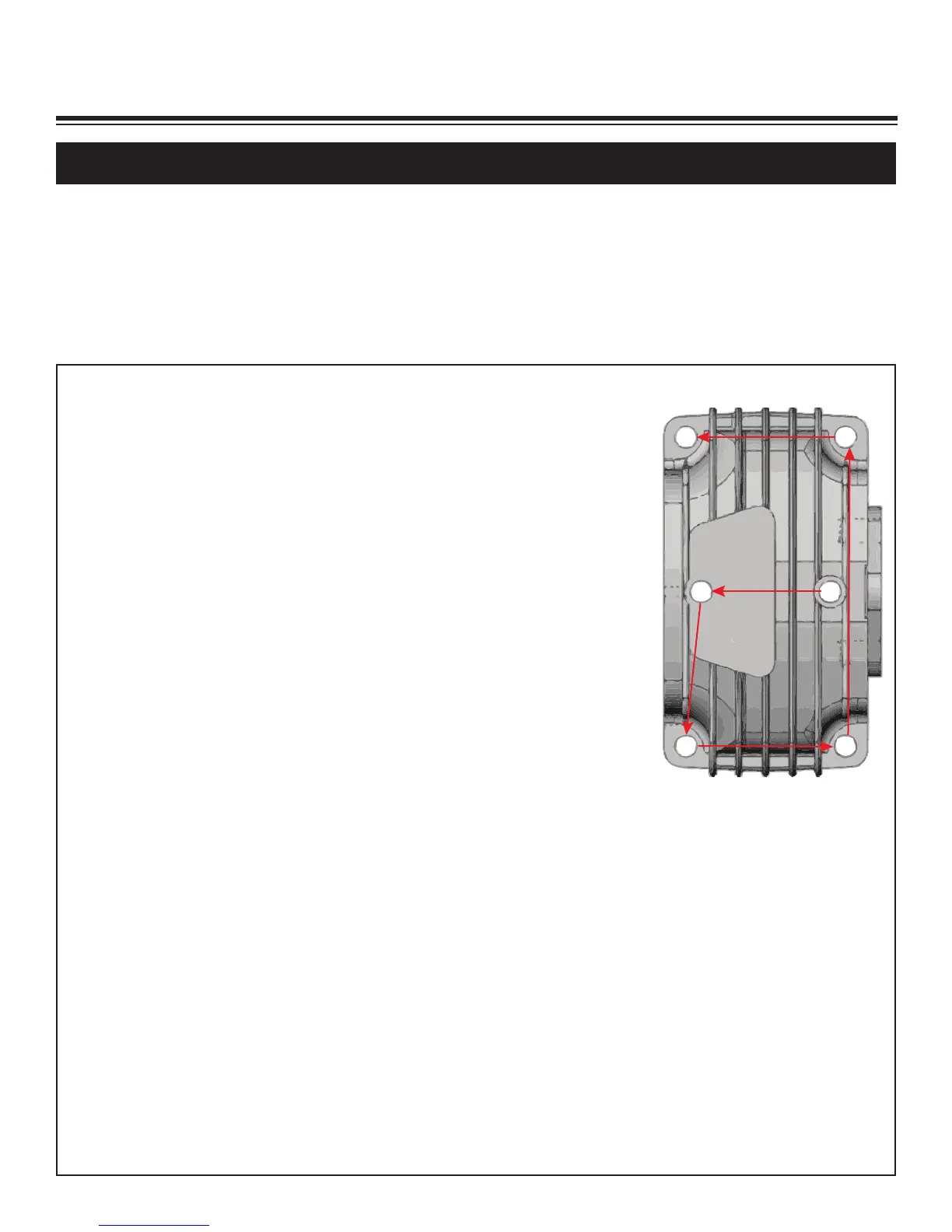 screws finger tight. In a criss-cross pattern, tighten bolts evenly so all bolts are hand snug.