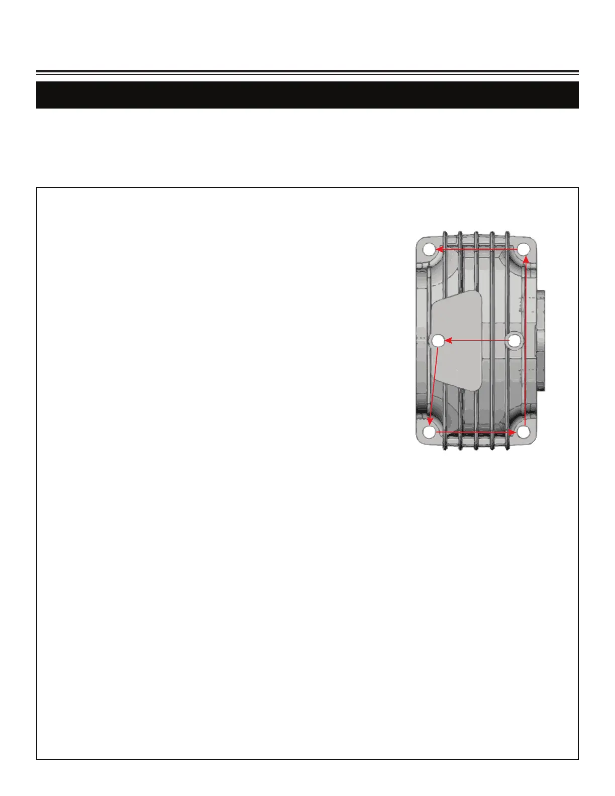 screws finger tight. In a criss-cross pattern, tighten bolts evenly so all bolts are hand snug.