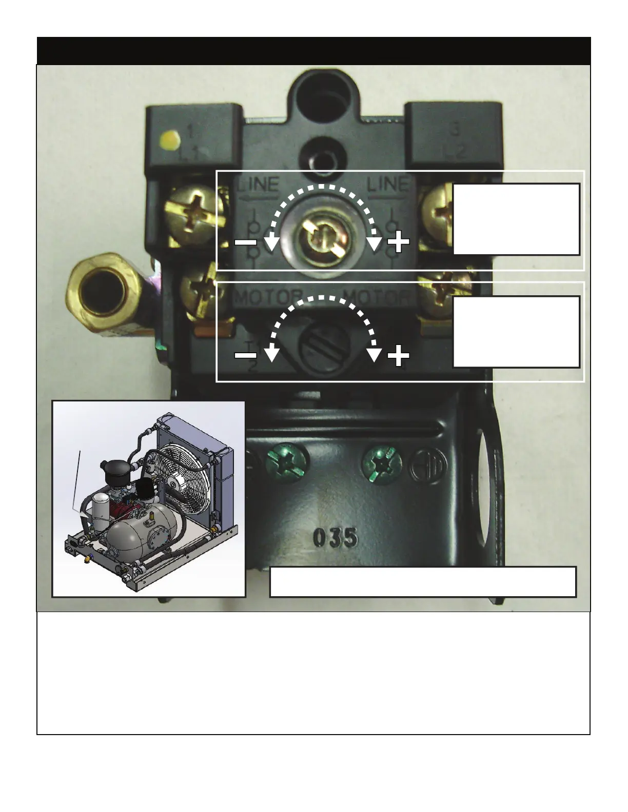 2. After kick out pressure is set, adjust the kick on screw setting to 115 psi minimum/120 psi