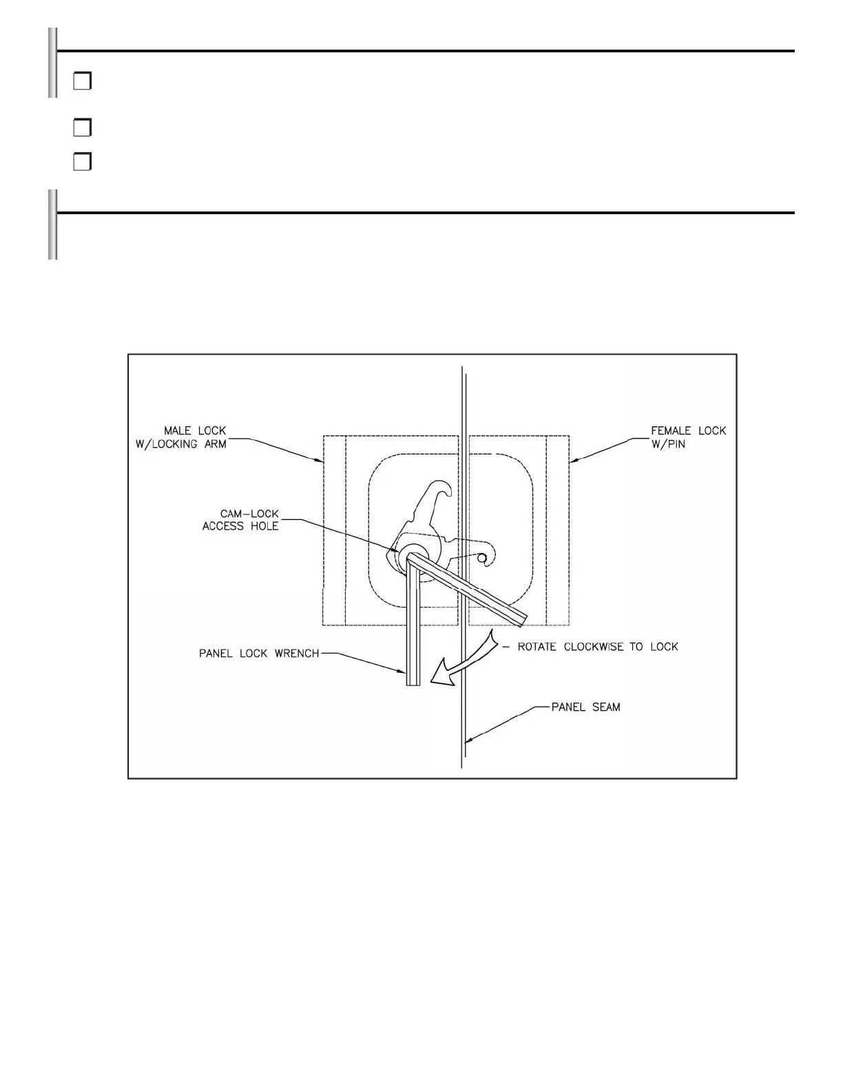 • Male and female cam-lock mechanisms must line-up on adjacent panels, but are able to tolerate a +/-