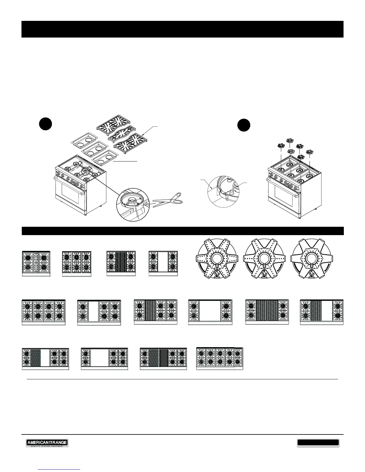 REMOVE GRATES FROM PACKAGING AND INSPECT THEM FOR RUBBER FEET. PLACE GRATES ON TOP OF RANGETOP