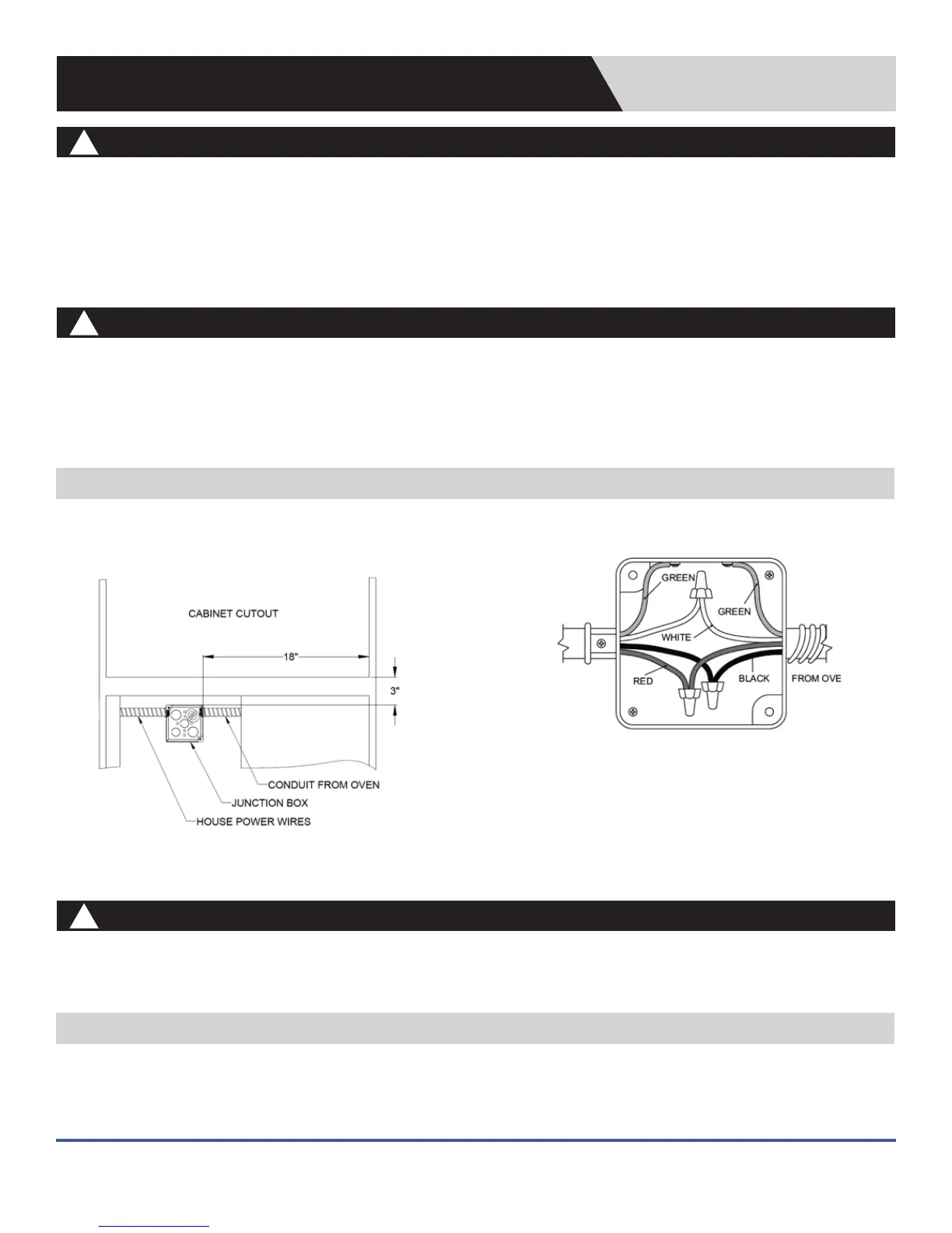 2. Install junction box. For single & double oven cabinet installation, the junction