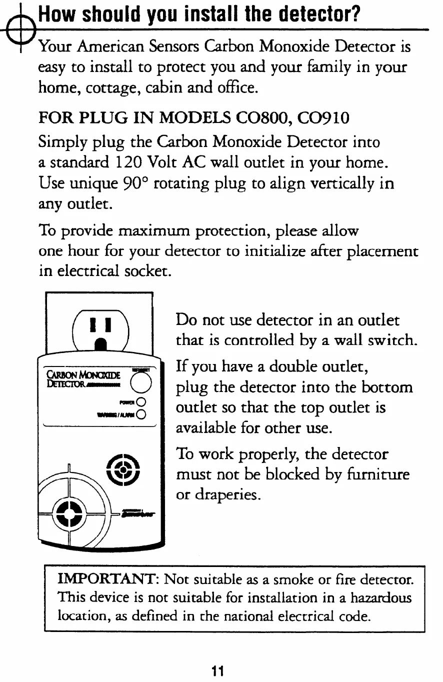 IMPORTANT: Not suitable as a smoke or fire detector.