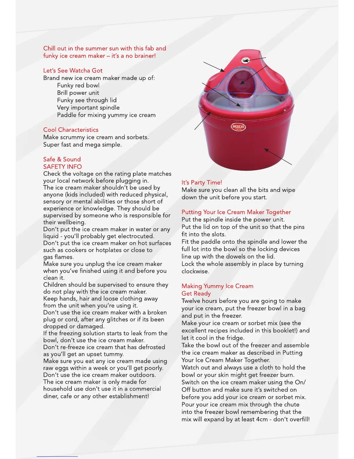 American EK0496 - Ice Cream Maker Operation; Component Identification; Key Features; Safety Precautions